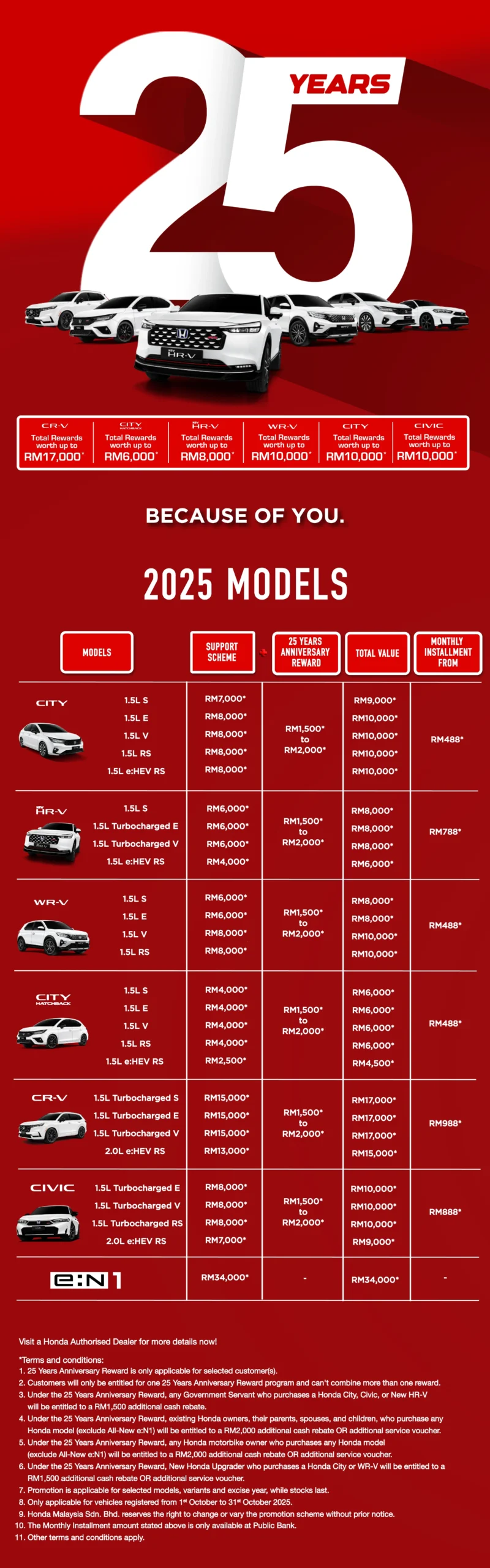 Hubungi kami sekarang untuk sebarang pertanyaan mengenai promosi/rebat terkini, dan urusan tempahan kereta Honda anda. Kami sedia membantu anda dengan pantas, mesra dan professional.